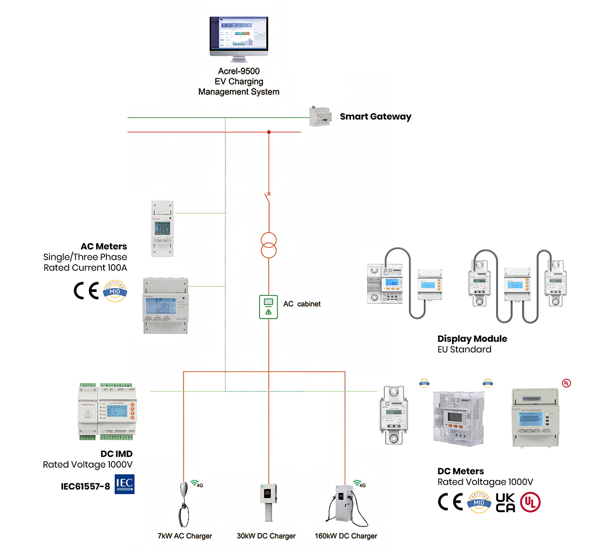 Acrel EV Charger Metering Solution poskytuje komplexní a účinný systém měření energie pro nabíjecí stanice pro elektromobily.