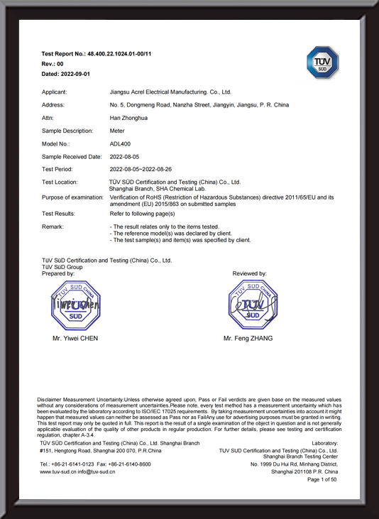 Výrobní závod společnosti, Jiangsu Acrel Electric Manufacturing Co., Ltd., dodržuje přísné standardy kvality a ekologické směrnice, s pokročilými testovacími centry a závazkem k bezolovnatým výrobním procesům. Tým Acrel složený z více než 500 inženýrů dodává špičkové systémy energetické účinnosti a chytrá energetická řešení.